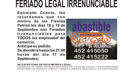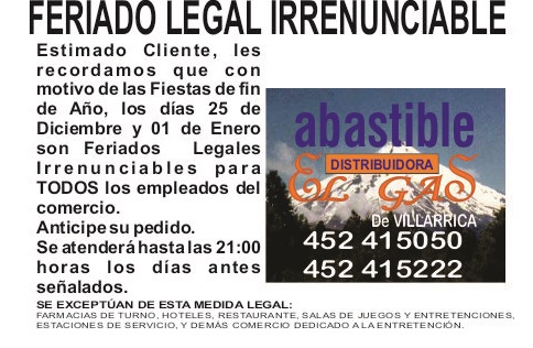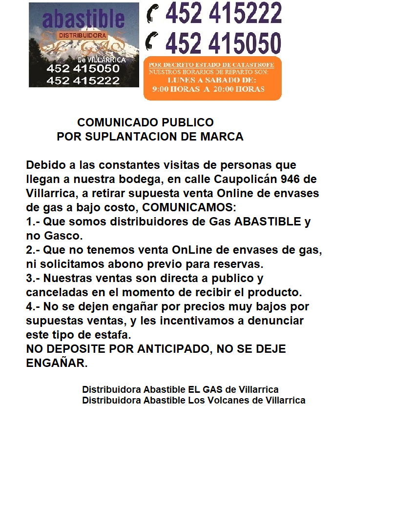 "El Gas" de Villarrica ATIENDE DE LUNES A SABADO